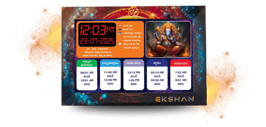 Most clocks tell you what time it is. Ekshan tells you what time it truly means. Ekshan is the first-ever Astro Time Companion that blends Vedic astrology with digital precision – guiding your daily actions with cosmic timing.